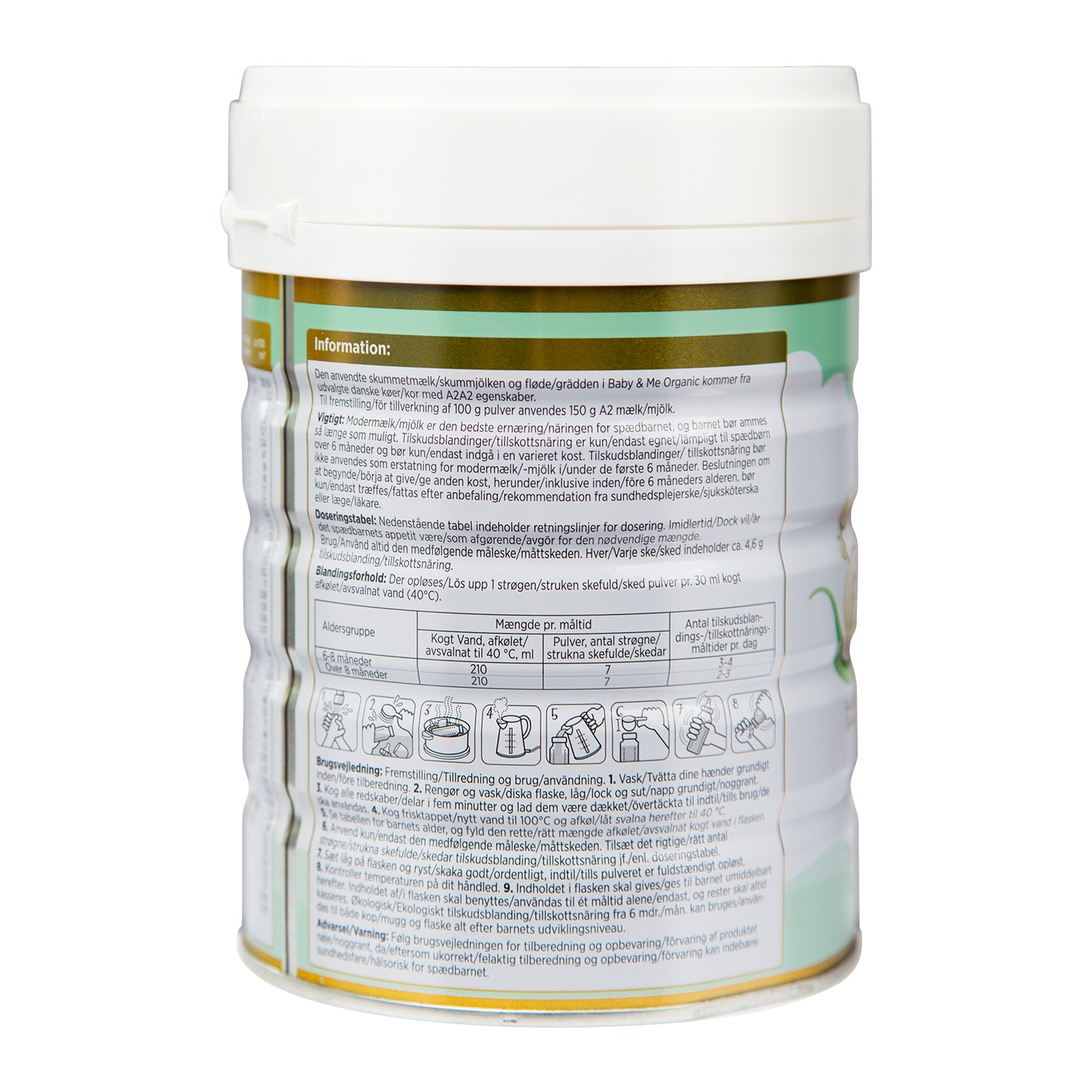 Arla Baby & Me 2 600g modersmjölksersättning är endast lämplig som specialfoder för spädbarn över 6 månader, och bör därför inte användas som ersättning för bröstmjölk under de första 6 månaderna av livet.