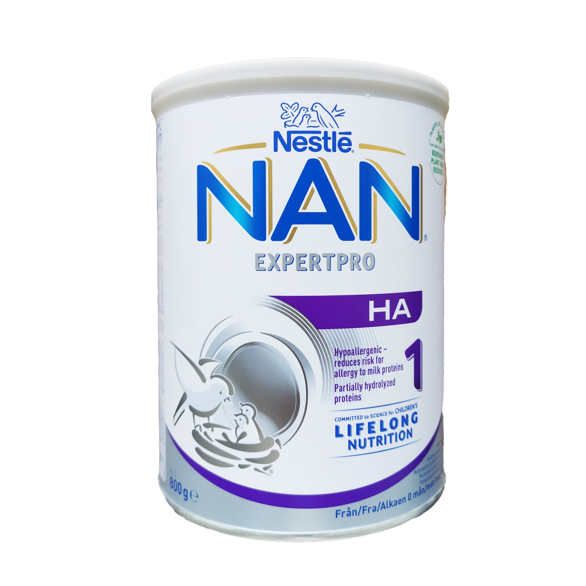 NAN H.A. 1 är en mjölkbaserad modersmjölksersättning som minskar risken för allergi mot mjölkprotein. NAN H.A. 1 kan ges från födseln.