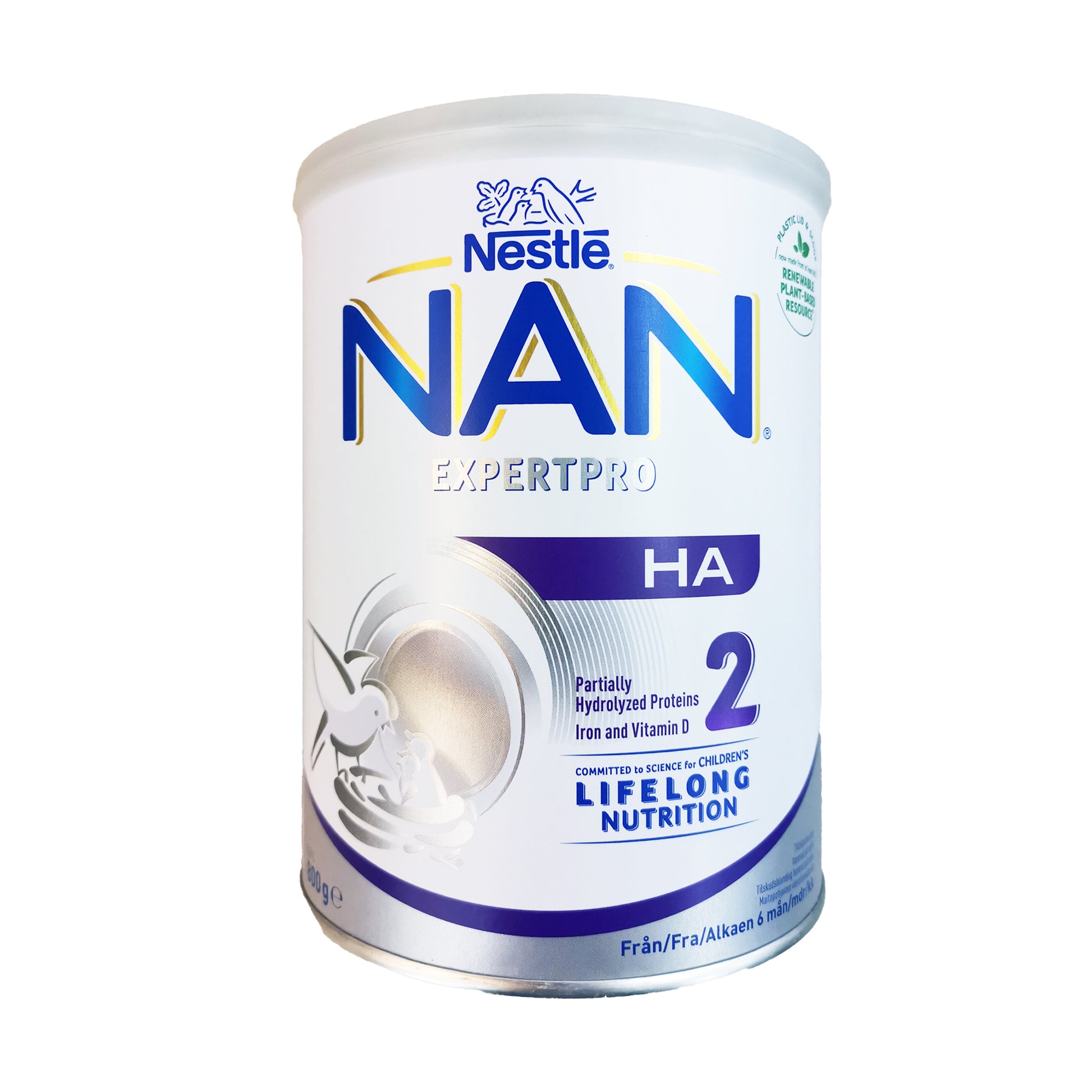 NAN H.A. 2 är en mjölkbaserad tillskottsnäring. NAN H.A. 2 kan ges från 6 månader. Med NAN H.A. 2 skaffa ditt barn precis som i NAN H.A. 1 hydrolyserat protein.