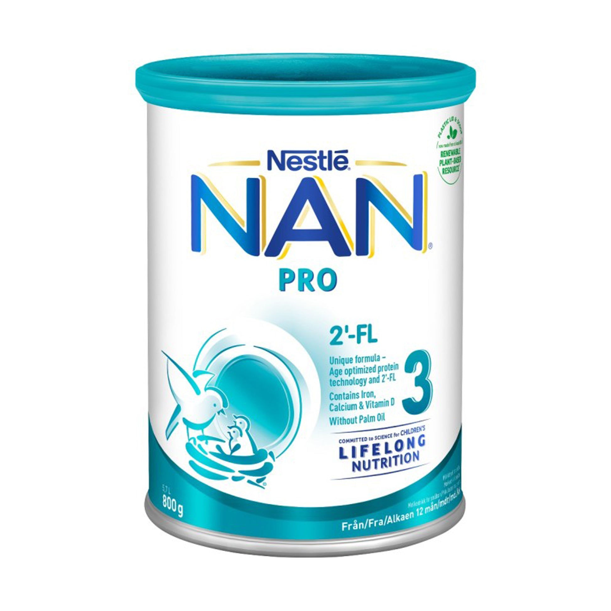 NAN PRO 3 är en bra källa till Omega-3-fettsyror och har samtidigt ett lågt innehåll av mättat fett.innehåller de essentiella långkedjiga fleromättade fettsyrorna omega-3 (ALA) och omega-6 (LA) för att småbarn ska växa och utvecklas normalt* och säkrar att småbarn inte missar dessa viktiga näringsämnen